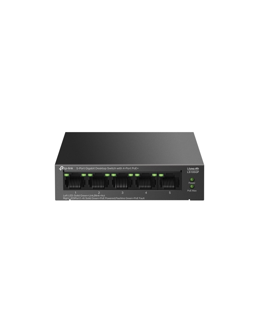 TP-Link LiteWave LS105GP. Tipo de interruptor: No administrado. Puertos tipo básico de conmutación RJ-45 Ethernet: Gigabit Ethernet (10/100/1000), Cantidad de puertos básicos de conmutación RJ-45 Ethernet: 5. Tabla de direcciones MAC: 2000 entradas, Capacidad de conmutación: 10 Gbit/s. Estándares de red: IEEE 802.1p, IEEE 802.3ab, IEEE 802.3af, IEEE 802.3at, IEEE 802.3i, IEEE 802.3u, IEEE 802.3x. Voltaje de entrada DC: 53.5 V. Energía sobre Ethernet (PoE)