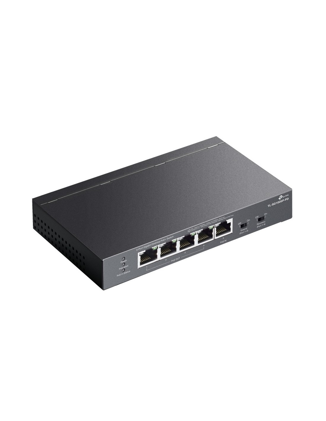 TP-Link TL-SG1005P-PD. Puertos tipo básico de conmutación RJ-45 Ethernet: Gigabit Ethernet (10/100/1000), Cantidad de puertos básicos de conmutación RJ-45 Ethernet: 5. Tabla de direcciones MAC: 2000 entradas, Capacidad de conmutación: 10 Gbit/s. Estándares de red: IEEE 802.1p, IEEE 802.3ab, IEEE 802.3af, IEEE 802.3at, IEEE 802.3bt, IEEE 802.3i, IEEE 802.3u,.... Energía sobre Ethernet (PoE). Montaje de pared