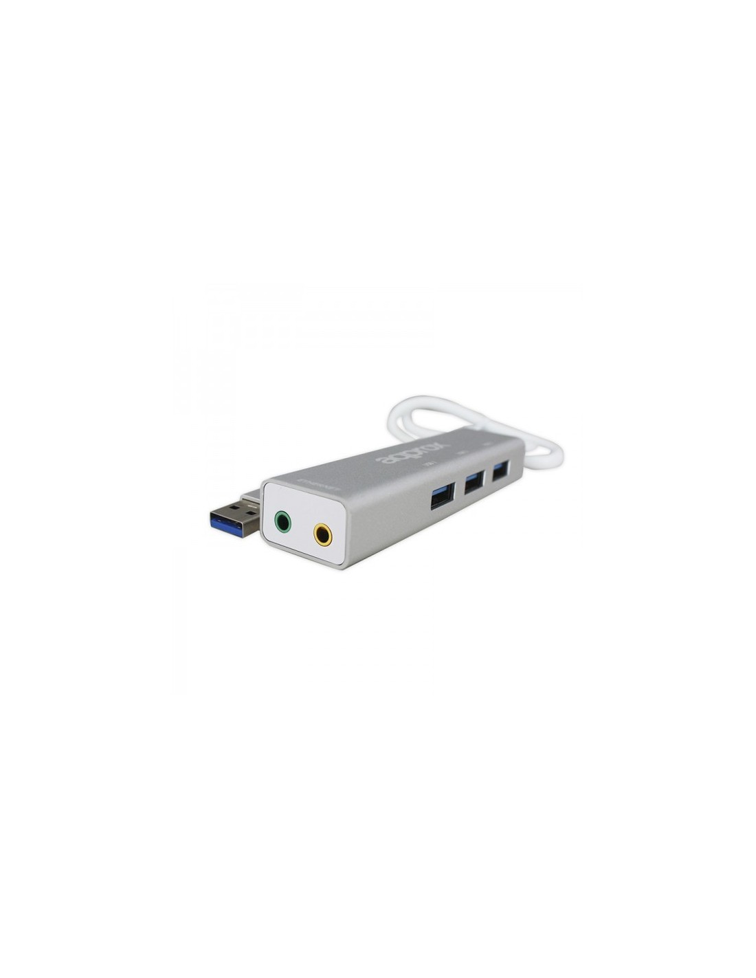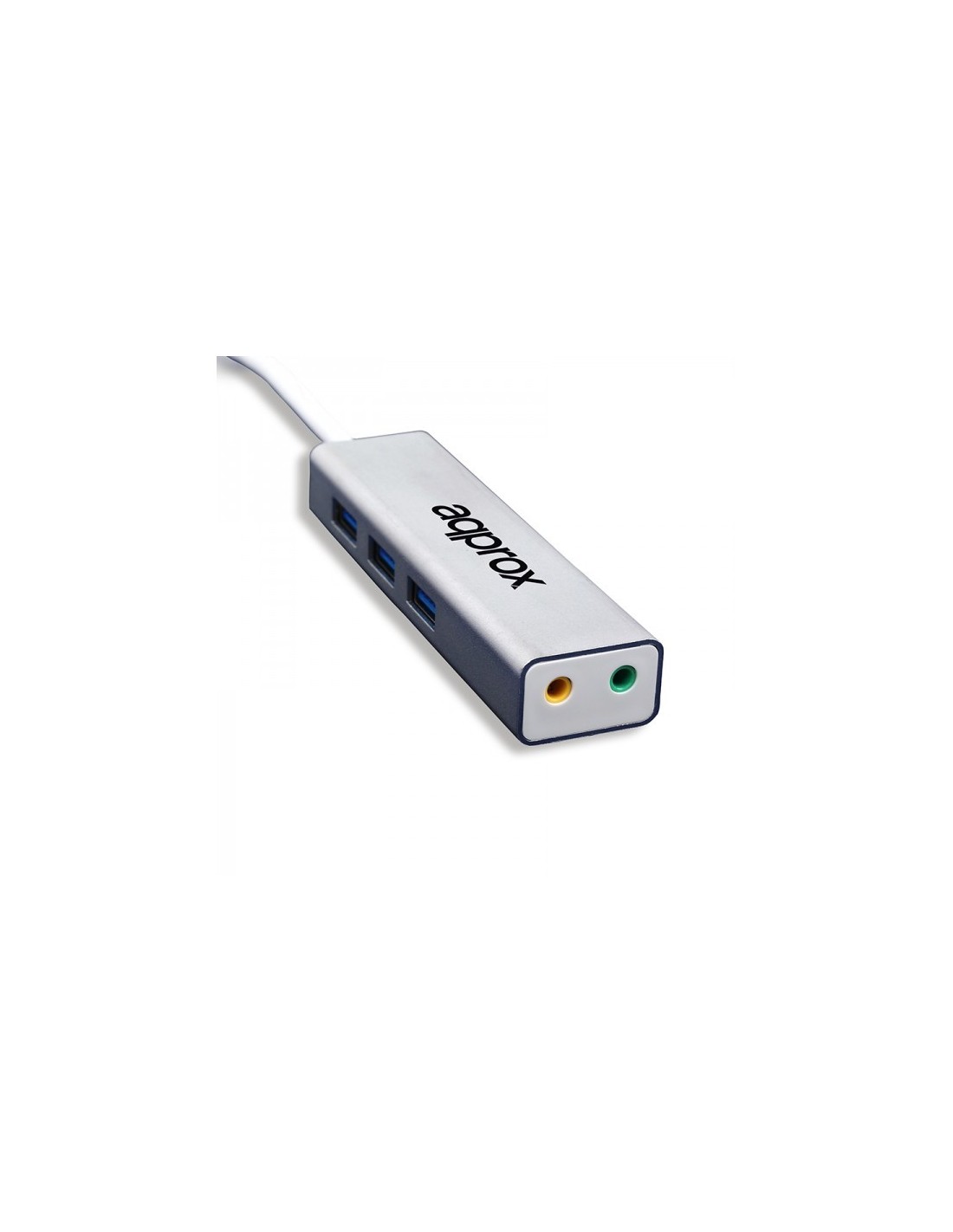 Approx APPUSB51HUB. Canales de salida de audio: 5.1 canales. Interfaz de host: USB, Auriculares: 3,5 mm. Color del producto: Aluminio, Gris. Peso: 60 g, Ancho: 99,9 mm, Profundidad: 26,9 mm. Número de productos incluidos: 1 pieza(s)