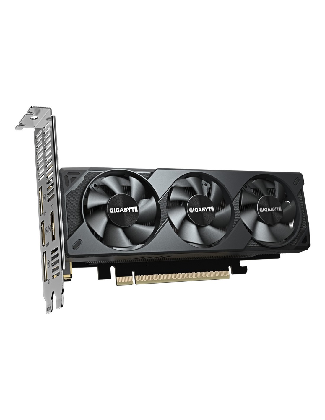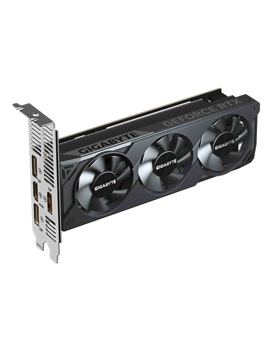 GIGABYTE GeForce RTX 5060 OC Low Profile 8G Tarjeta Gráfica - 8GB GDDR7, 128bit, PCI-E 5.0, 2512 MHz Frecuencia del núcleo, 3 x DisplayPort, 1 x HDMI, GV-N5060OC-8GL. Familia de procesadores de gráficos: NVIDIA, Procesador gráfico: GeForce RTX 5060, Frecuencia del procesador: 2512 MHz. Capacidad memoria de adaptador gráfico: 8 GB, Tipo de memoria de adaptador gráfico: GDDR7, Ancho de datos: 128 bit, Velocidad de memoria del reloj: 28000 MHz. Máxima resolución: 7680 x 4320 Pixeles. Versión DirectX: 12.0, Versión OpenGL: 4.6. Tipo de interfaz: PCI Express 5.0. Tipo de enfriamiento: Activo, Número de ventiladores: 3 Ventilador(es)