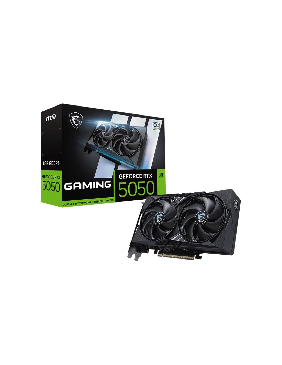 MSI GeForce RTX 5050 8G GAMING OC. Familia de procesadores de gráficos: NVIDIA, Procesador gráfico: GeForce RTX 5050. Capacidad memoria de adaptador gráfico: 8 GB, Tipo de memoria de adaptador gráfico: GDDR6, Ancho de datos: 128 bit. Máxima resolución: 7680 x 4320 Pixeles. Versión DirectX: 12 Ultimate, Versión OpenGL: 4.6. Tipo de interfaz: PCI Express x16 5.0. Tipo de enfriamiento: Activo, Número de ventiladores: 2 Ventilador(es)