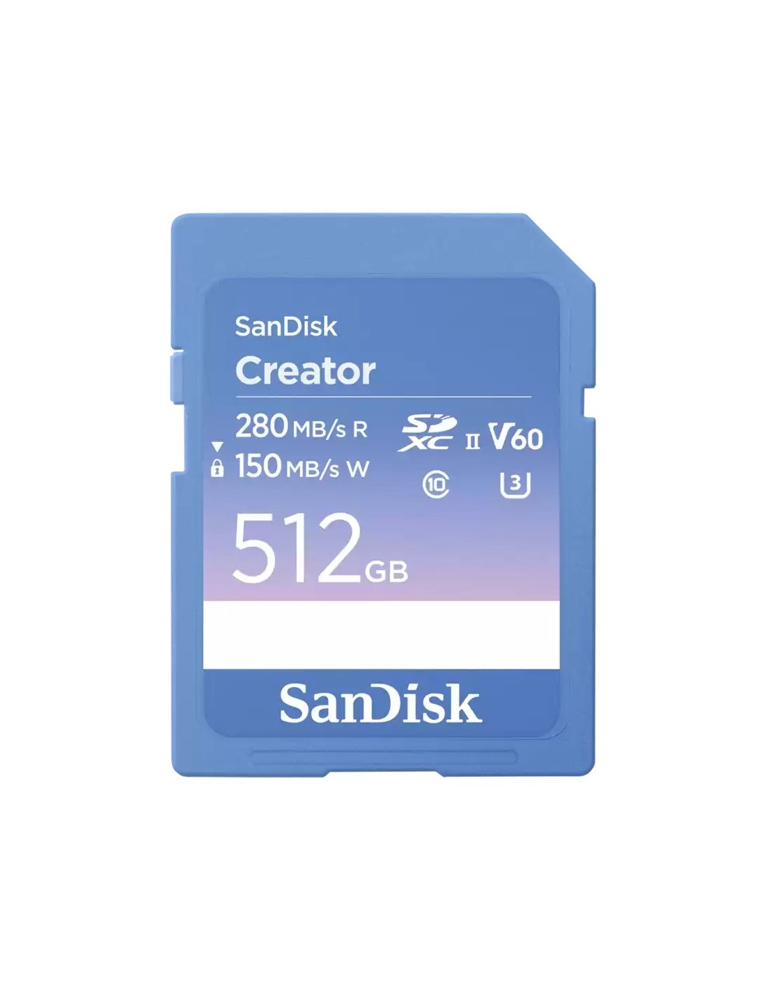 SanDisk Creator. Capacidad: 512 GB, Tipo de tarjeta flash: SDXC, Clase de memoria flash: Clase 10, Tipo de memoria interna: UHS-II, Velocidad de lectura: 280 MB/s, Velocidad de escritura: 150 MB/s, Clase de velocidad UHS: Class 3 (U3), Clase de velocidad de vídeo: V60. Color del producto: Azul