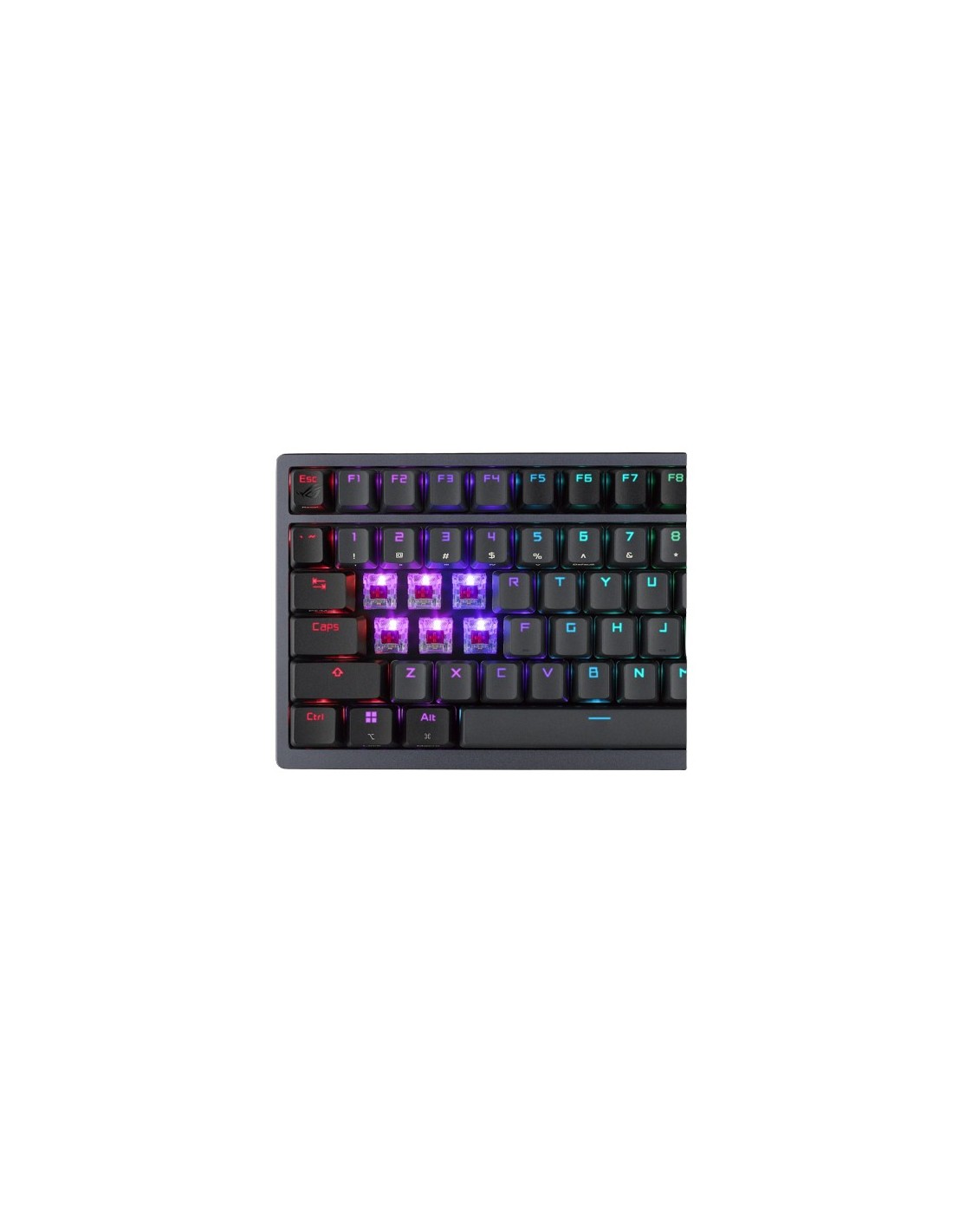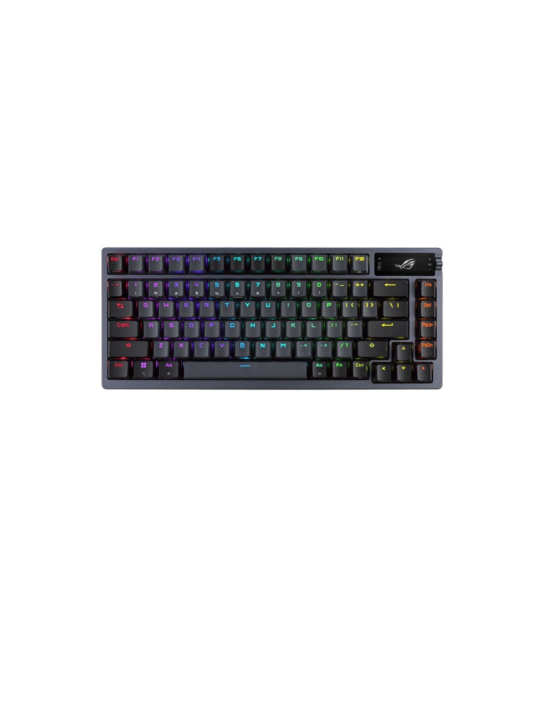 ASUS Azoth. Formato del teclado: 75%. Estilo de teclado: Derecho. Tecnología de conectividad: Inalámbrico y alámbrico, Interfaz del dispositivo: USB + RF Wireless + Bluetooth, Interruptor del teclado: Interruptor mecánico, Diseño de teclado: QWERTY. Tipo de retroiluminación: LED RGB. Longitud de cable: 2 m. Uso recomendado: Juego. Color del producto: Metálico