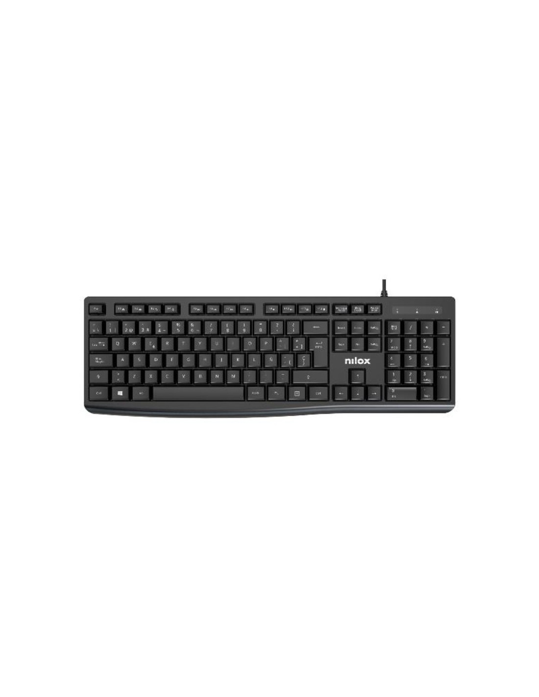 Nilox NXKBE000013. Tecnología de conectividad: Alámbrico, Interfaz del dispositivo: USB, Interruptor del teclado: Interruptor de membrana, Teclado, cantidad de teclas: 105. Longitud de cable: 1,5 m. Uso recomendado: Oficina. Color del producto: Negro