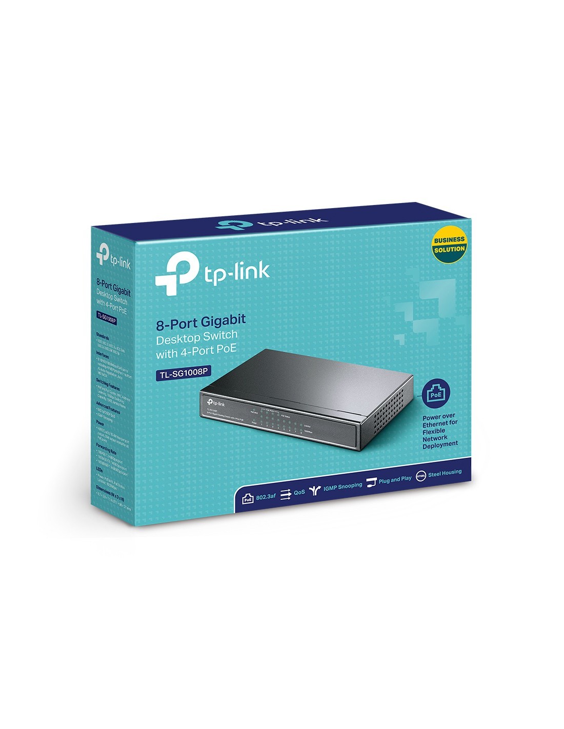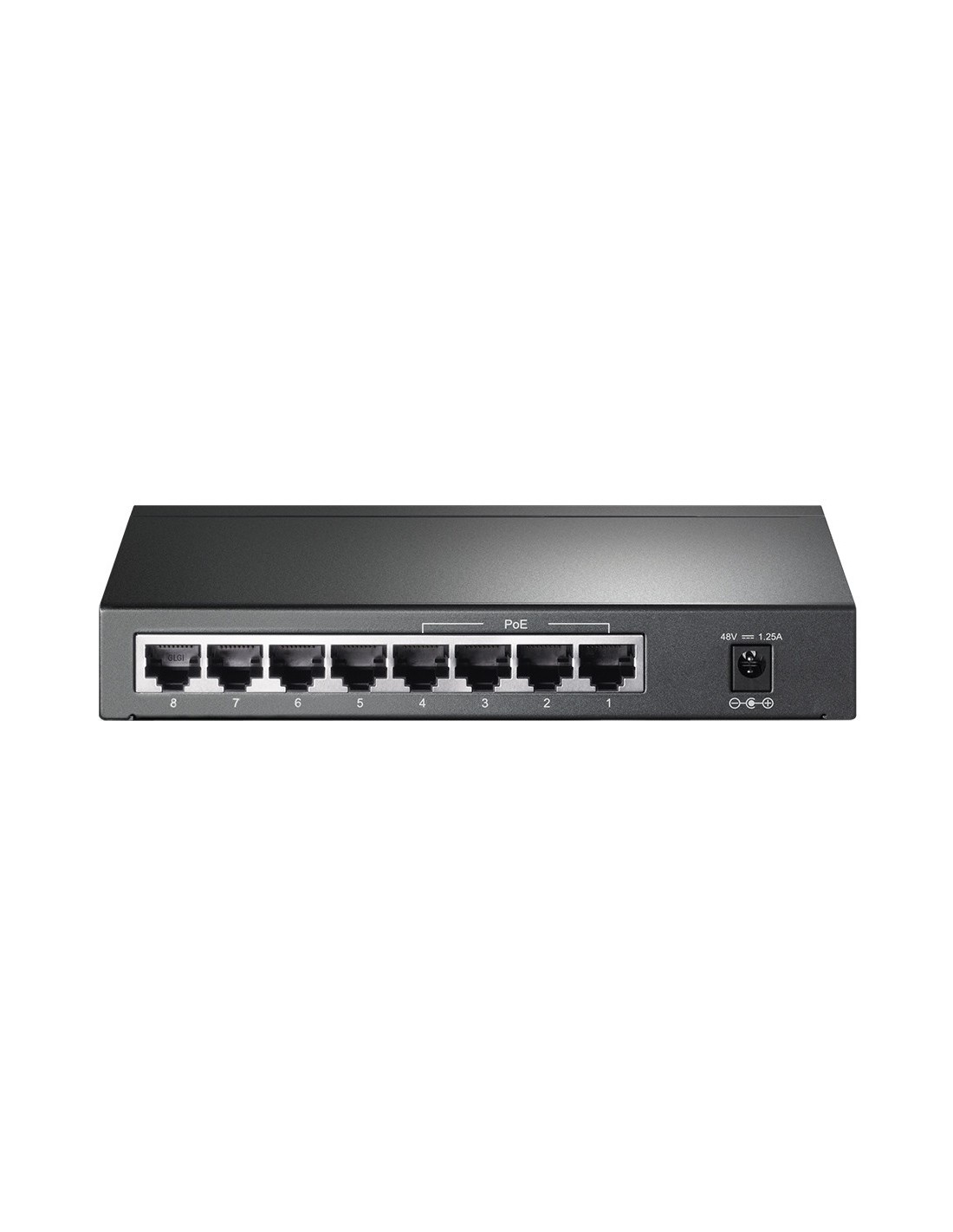 TP-Link TL-SG1008P. Tipo de interruptor: No administrado. Puertos tipo básico de conmutación RJ-45 Ethernet: Gigabit Ethernet (10/100/1000), Cantidad de puertos básicos de conmutación RJ-45 Ethernet: 8. Bidireccional completo (Full duplex). Tabla de direcciones MAC: 4800 entradas, Capacidad de conmutación: 16 Gbit/s. Estándares de red: IEEE 802.11j. Voltaje de entrada DC: 48 V. Conector eléctrico: Toma de entrada de CC. Energía sobre Ethernet (PoE)