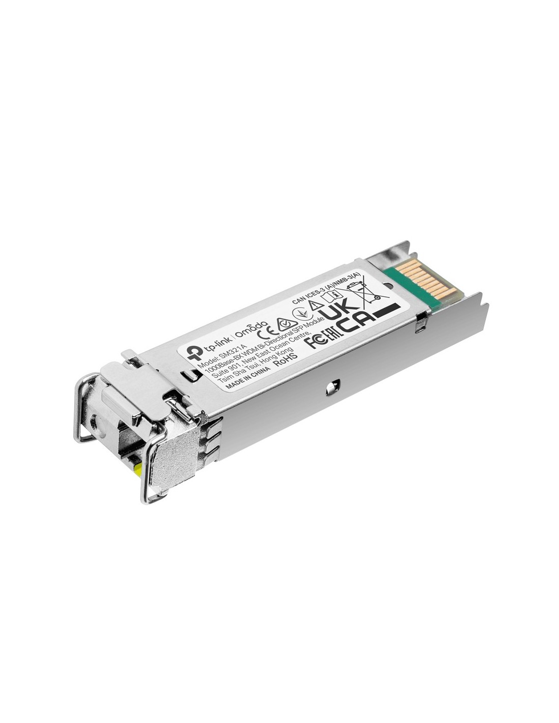 TP-Link Omada SM321A. Tipo de transceptor SFP: Fibra óptica, Rango máximo de transferencia de datos: 1250 Mbit/s, Tipo de interfaz: SFP. Color del producto: Plata, Certificación: FCC, CE. Voltaje de entrada: 3.3 V. Ancho: 55,4 mm, Profundidad: 14,6 mm, Altura: 12,9 mm. Número de productos incluidos: 1 pieza(s)