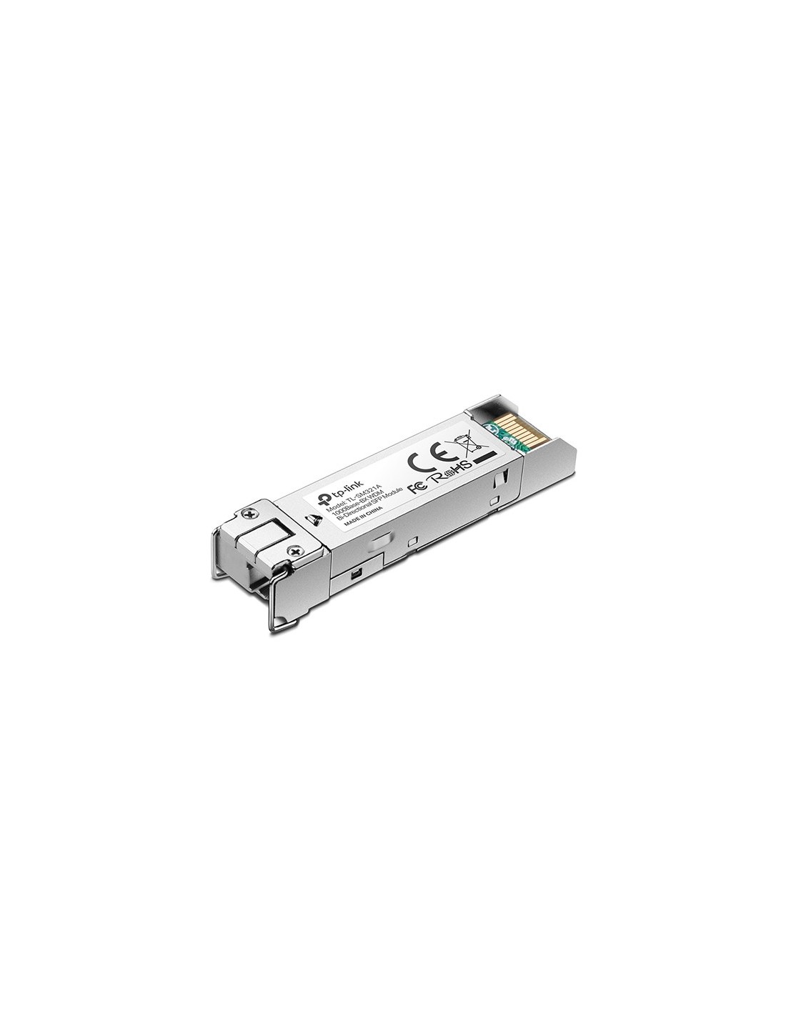TP-Link TL-SM321B. Tipo de transceptor SFP: Fibra óptica, Rango máximo de transferencia de datos: 1250 Mbit/s, Tipo de interfaz: SFP. Color del producto: Metálico, Certificación: FCC, CE. Ancho: 55,4 mm, Profundidad: 14,6 mm, Altura: 12,9 mm. Número de productos incluidos: 1 pieza(s), Ancho del paquete: 81,5 mm, Profundidad del paquete: 122,5 mm