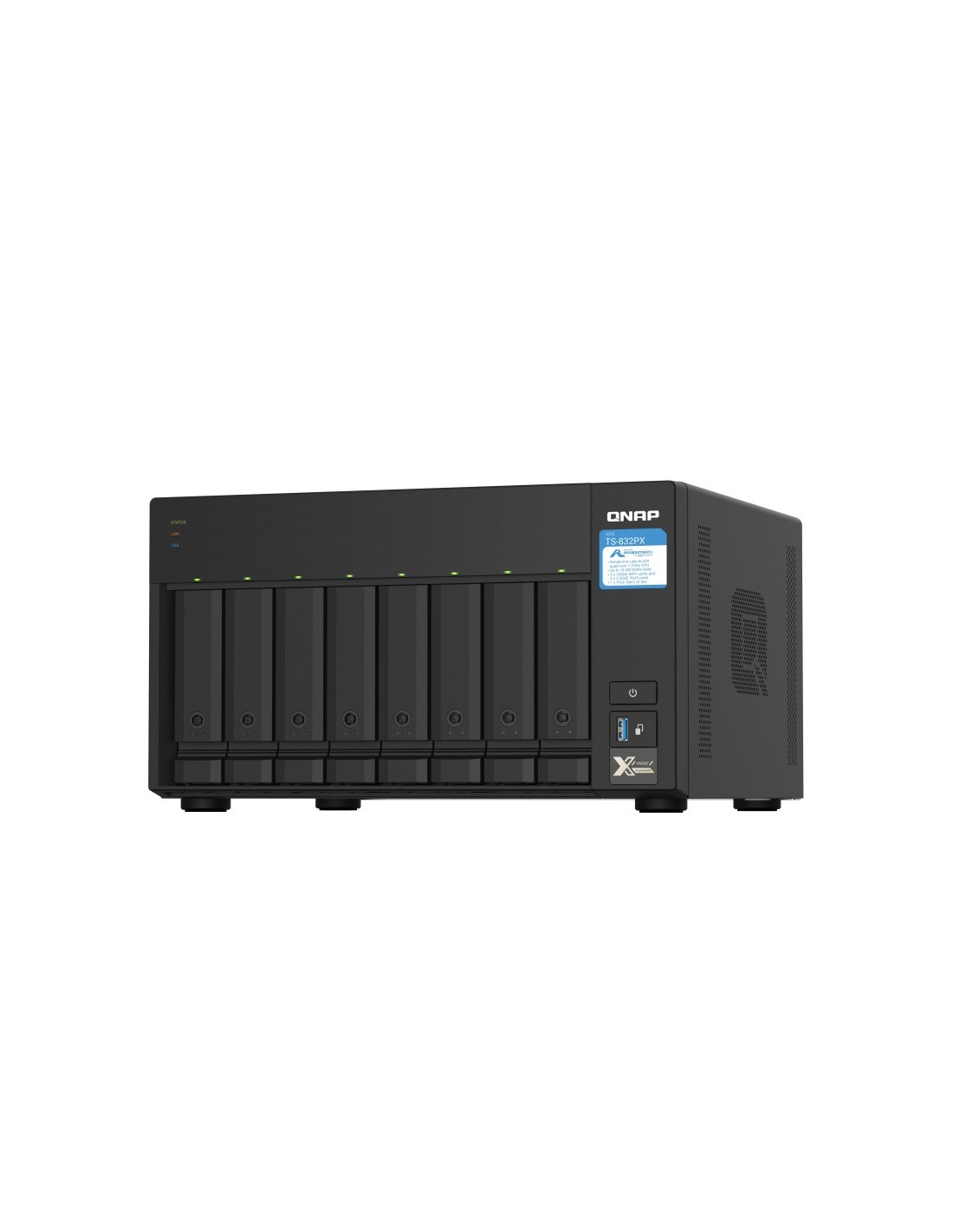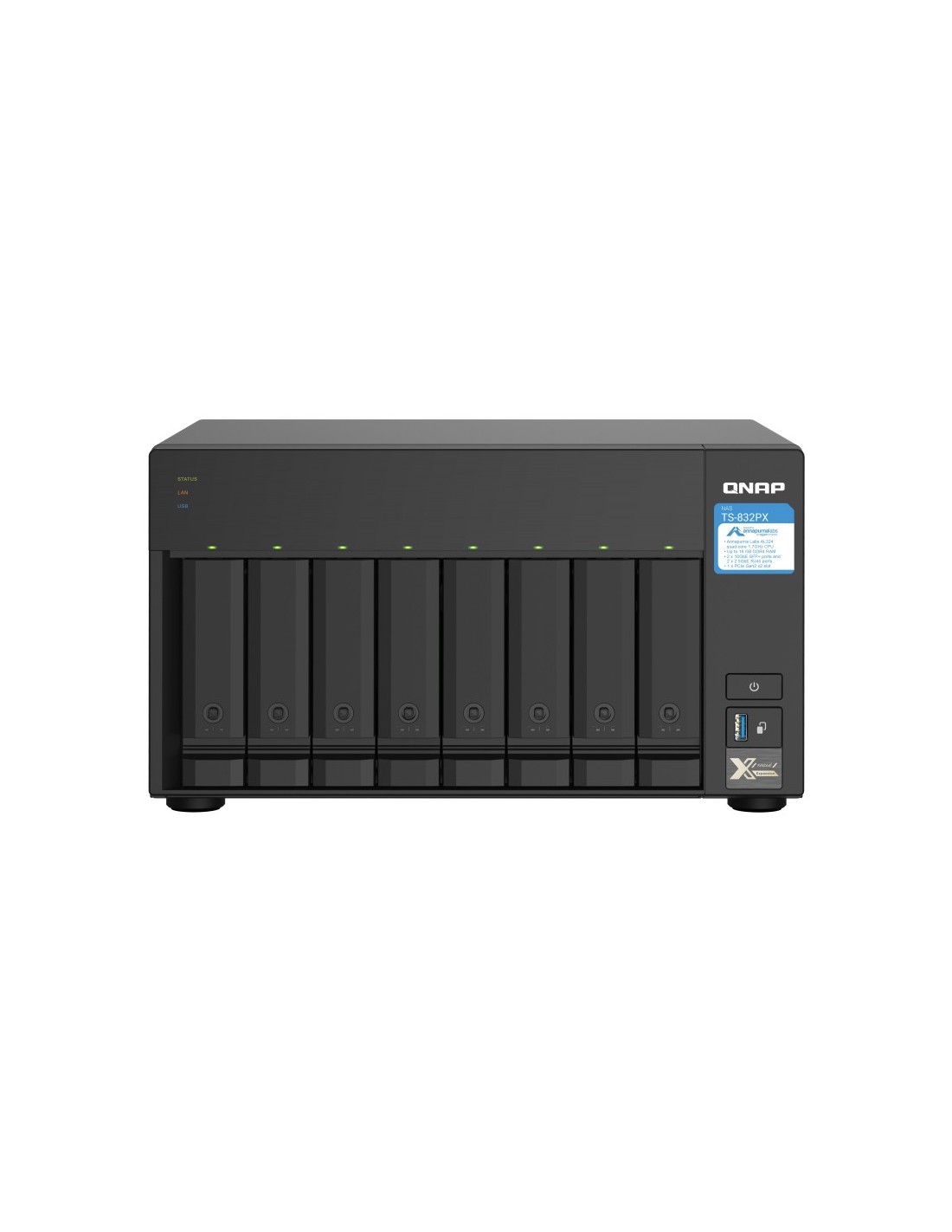 QNAP TS-832PX, NAS, Torre, Annapurna Labs, AL324, Aluminio, Negro