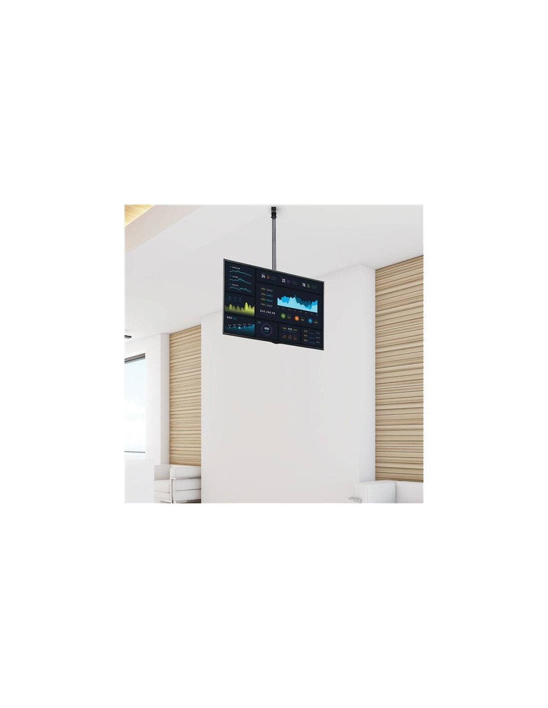 Este soporte de TV para techo admite televisores compatibles con soportes VESA de 32" a 75"; con una capacidad de peso de hasta 50 kg (110 lb). Le permite ahorrar espacio en la pared y en el suelo colgando su televisor de pantalla plana LCD, LED o plasma del techo en una zona destacada.