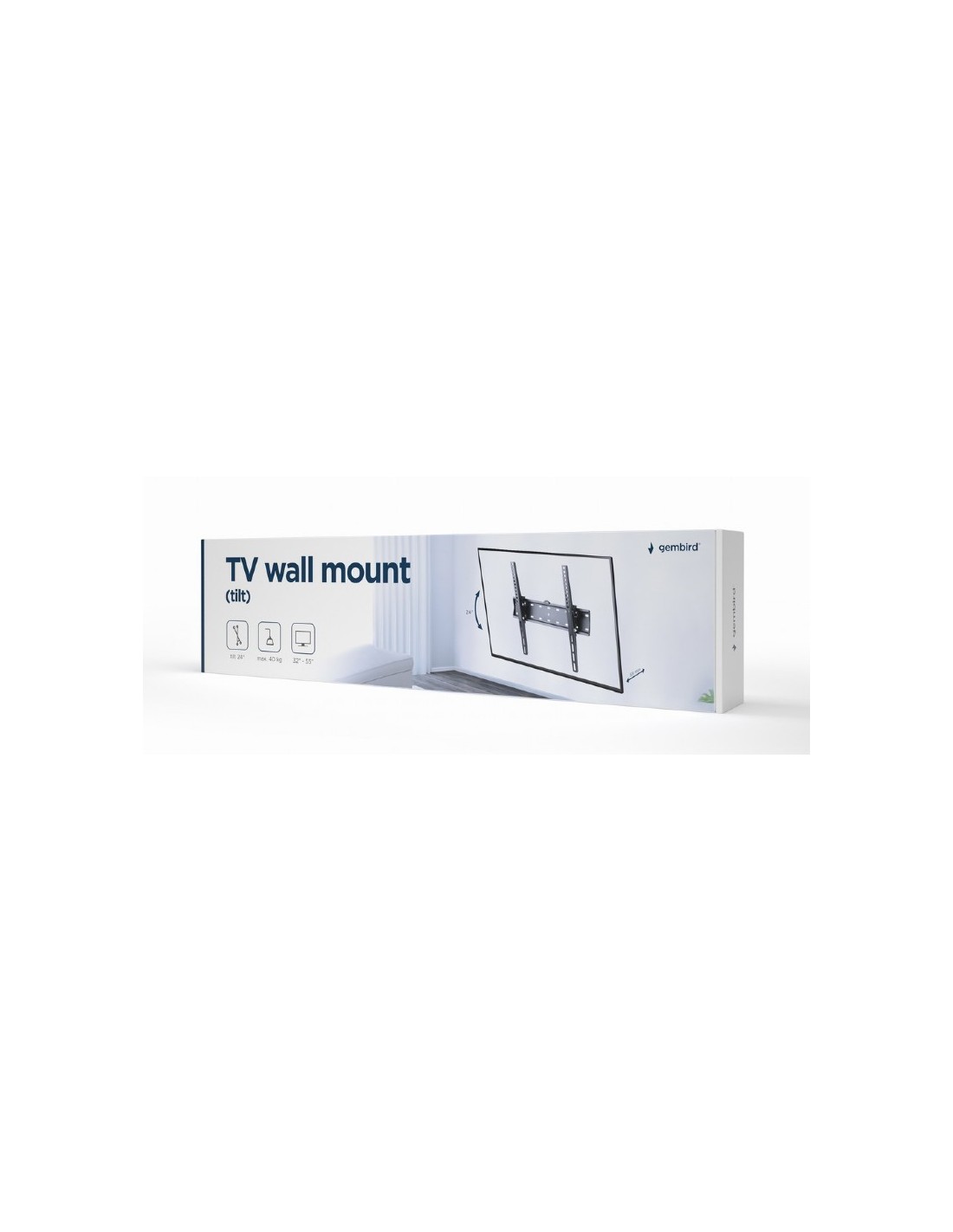 Gembird WM-55T-02. Capacidad máxima de peso: 40 kg, Tamaño mínimo de pantalla: 81,3 cm (32"), Tamaño máximo de pantalla: 139,7 cm (55"), Compatibilidad con interfaz de montaje (min): 200 x 200 mm, Compatibilidad con interfaz de montaje (max): 400 x 400 mm. Ángulo de inclinación: -12 - 12°, Distancia a la pared (max): 5,3 cm. Color del producto: Negro