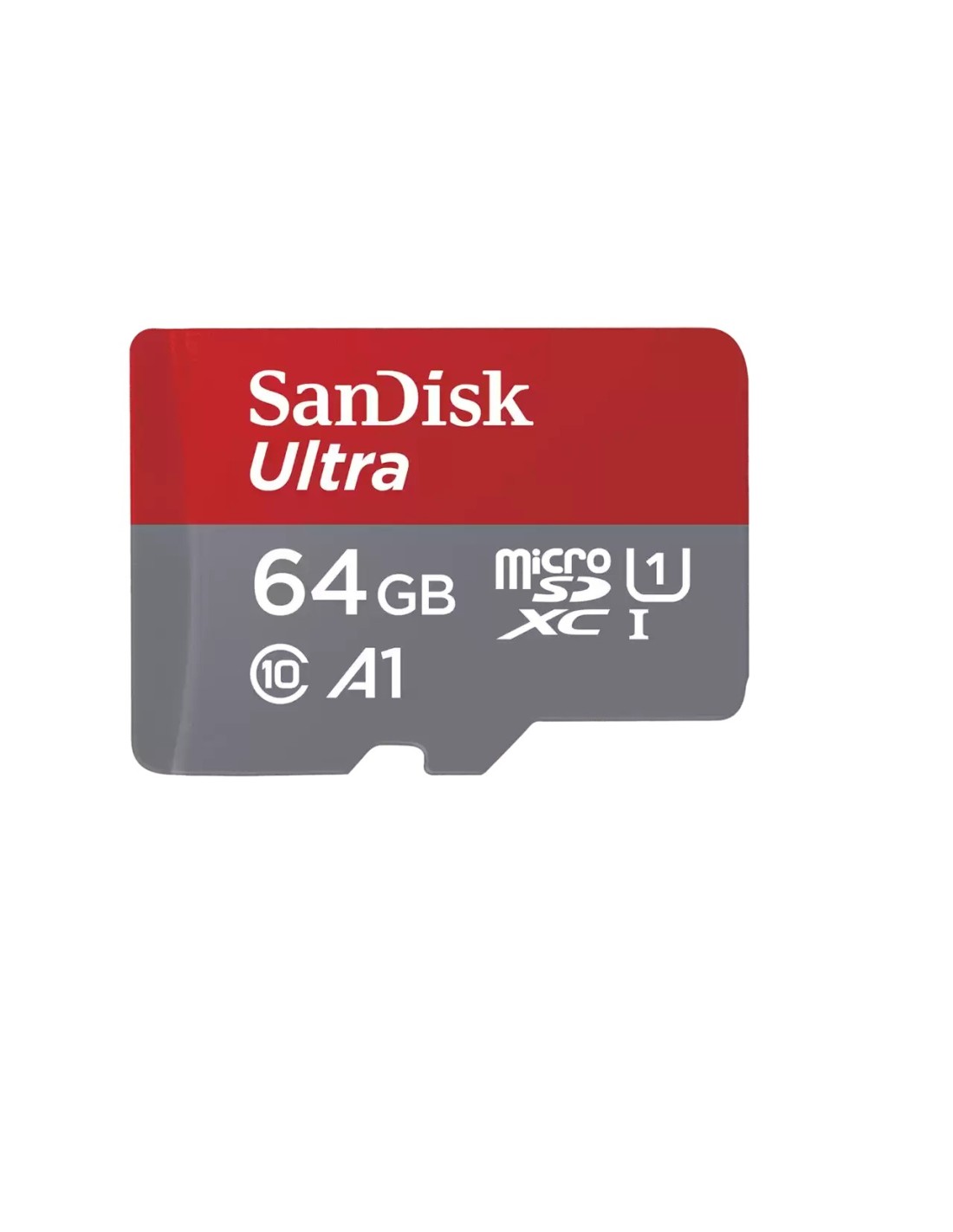SanDisk Ultra. Capacidad: 64 GB, Tipo de tarjeta flash: MicroSDXC, Clase de memoria flash: Clase 10, Tipo de memoria interna: UHS-I, Clase de velocidad UHS: Class 1 (U1). Funciones de protección: Protección contra campos magnéticos, Resistente a golpes, Resistente a la temperatura,..., Color del producto: Gris, Rojo