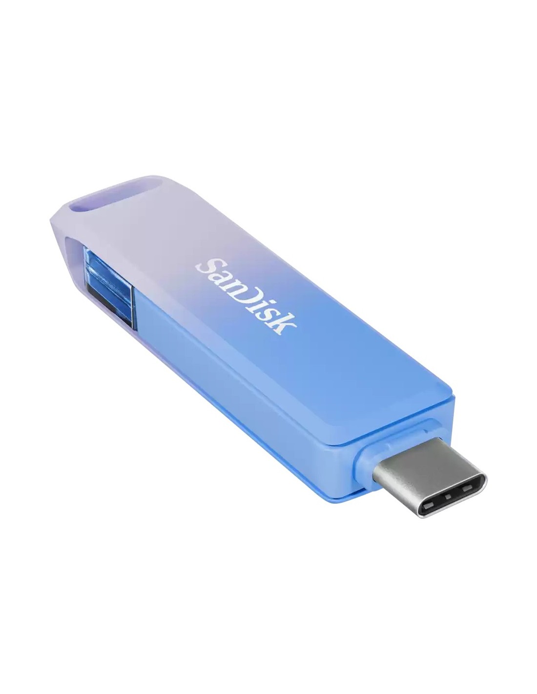 SanDisk Creator Phone Drive. Capacidad: 128 GB, Interfaz del dispositivo: USB Type-C / Lightning, Versión USB: 3.2 Gen 1 (3.1 Gen 1). Factor de forma: Sin tapa. Peso: 20,3 g. Color del producto: Azul, Lila