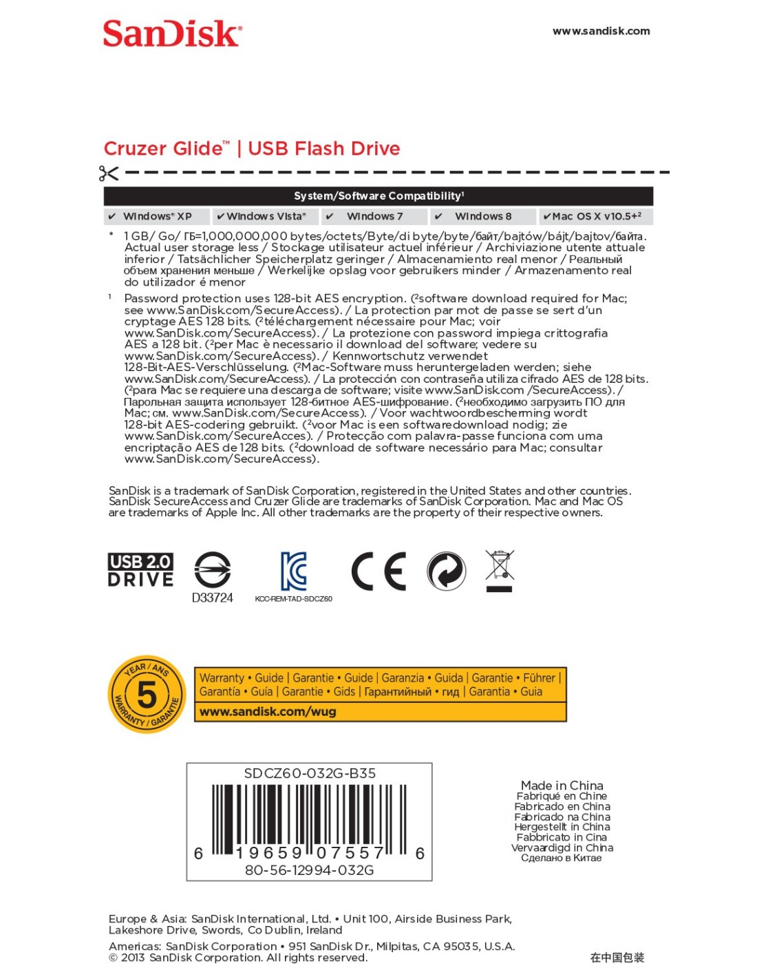 SanDisk Cruzer Glide. Capacidad: 32 GB, Interfaz del dispositivo: USB tipo A, Versión USB: 2.0. Factor de forma: Deslizar. Protección mediante contraseña. Peso: 6,8 g. Color del producto: Negro, Rojo