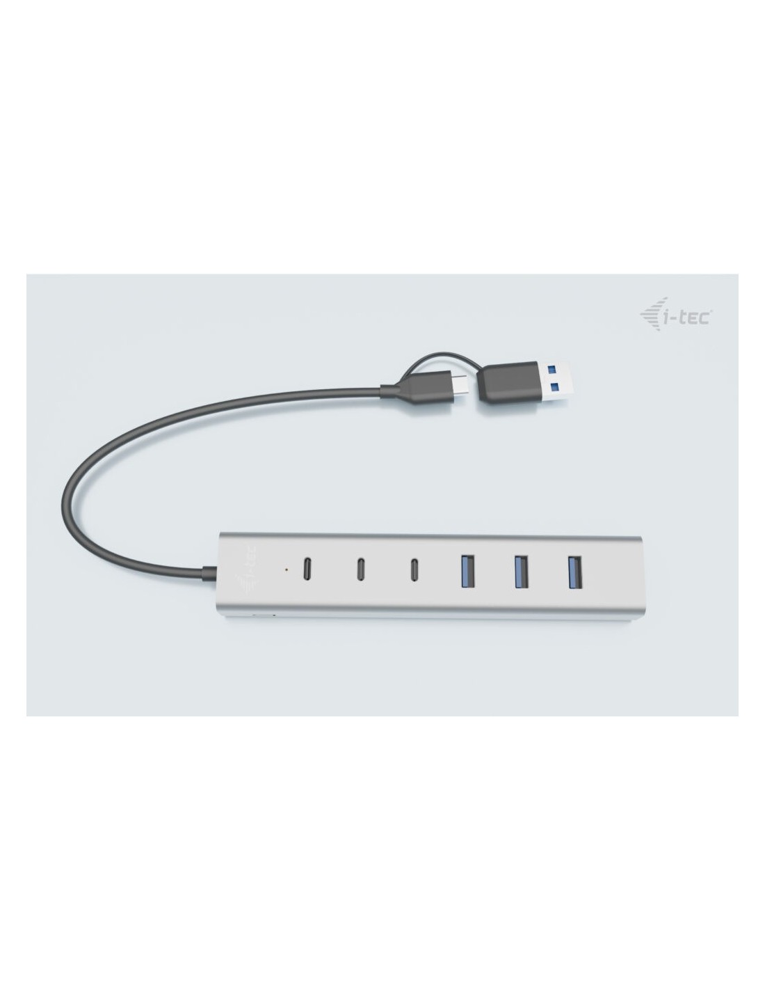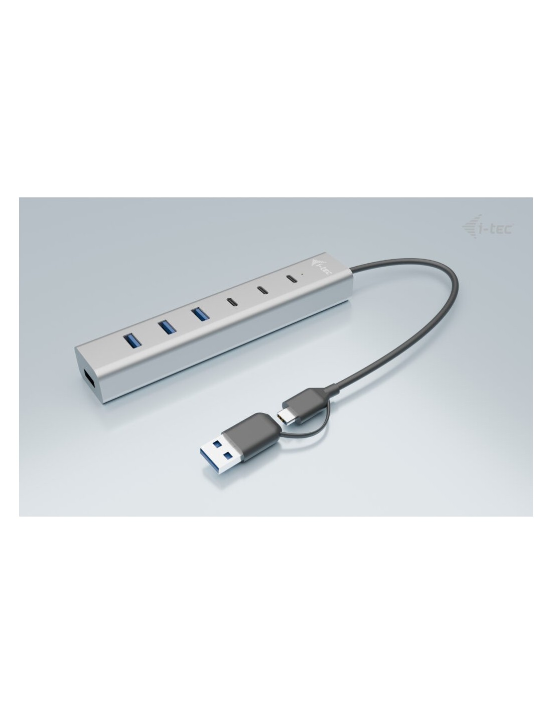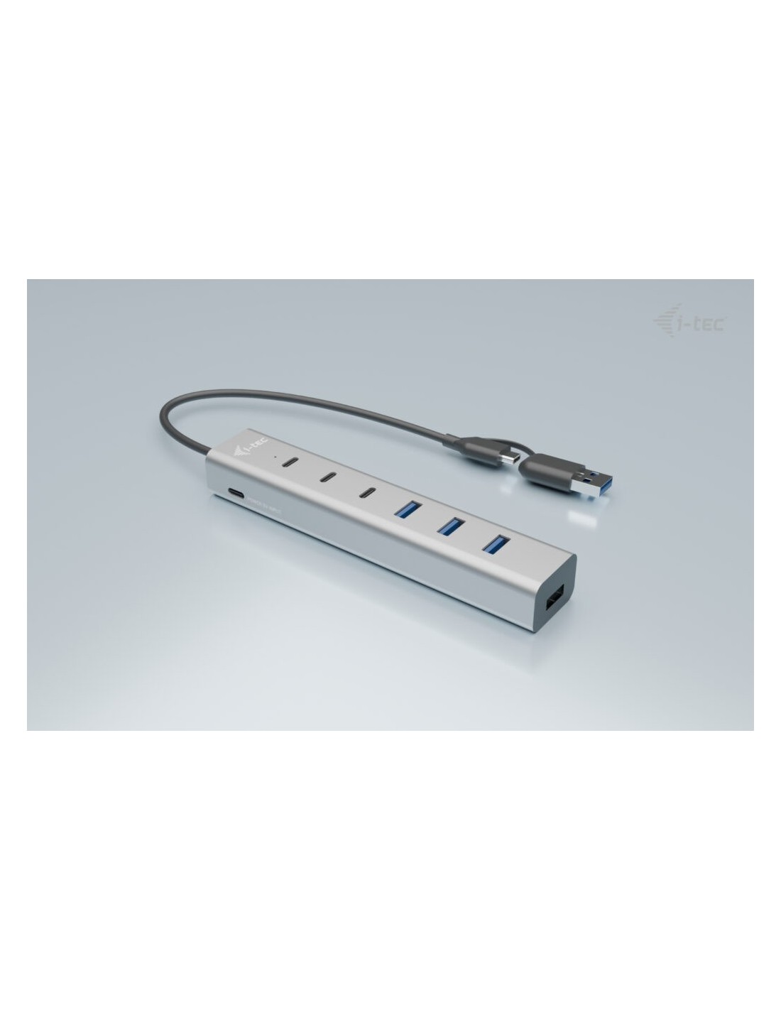i-tec USB-C/USB-A Charging Metal HUB 7 port (3x USB-C, 4x USB-A), USB 3.2 Gen 1 (3.1 Gen 1) Type-A + Type-C, USB 3.2 Gen 1 (3.1 Gen 1) Type-A, USB 3.2 Gen 1 (3.1 Gen 1) Type-C, 5 Mbit/s, Gris, 0,3 m, 15 W