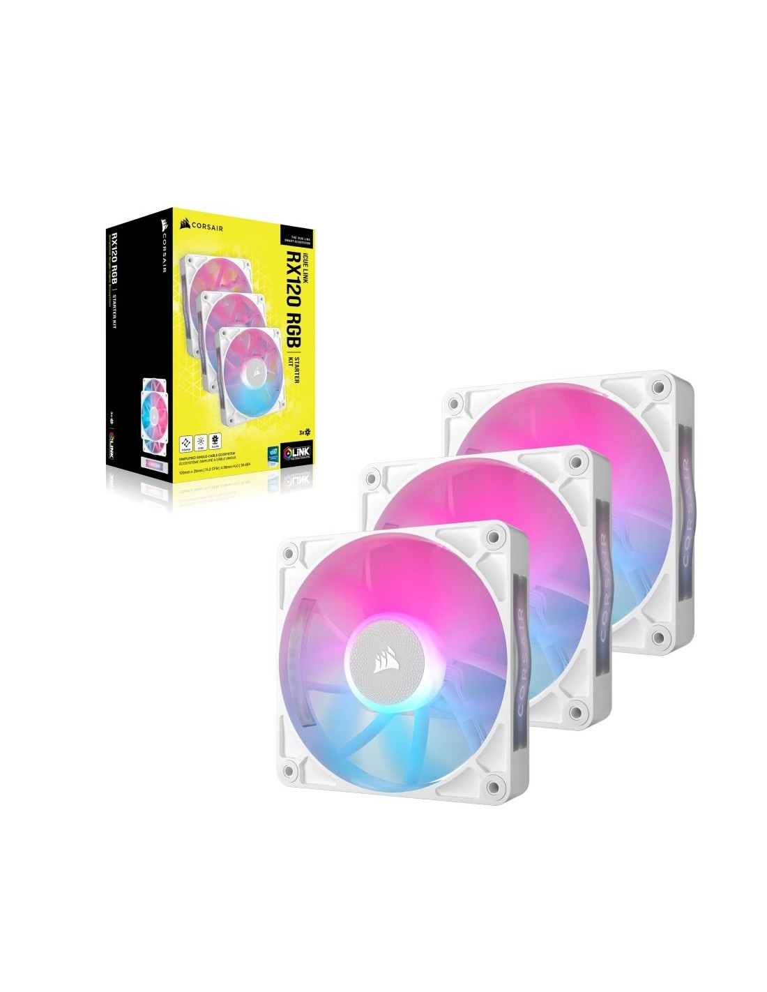 Corsair iCUE LINK RX120 RGB. Tipo: Ventilador, Diámetro de ventilador: 12 cm, Velocidad de rotación (mín.): 400 RPM, Velocidad de rotación (máx.): 2100 RPM, Tipo de soporte: Rodamiento de levitación magnética. Color del producto: Blanco