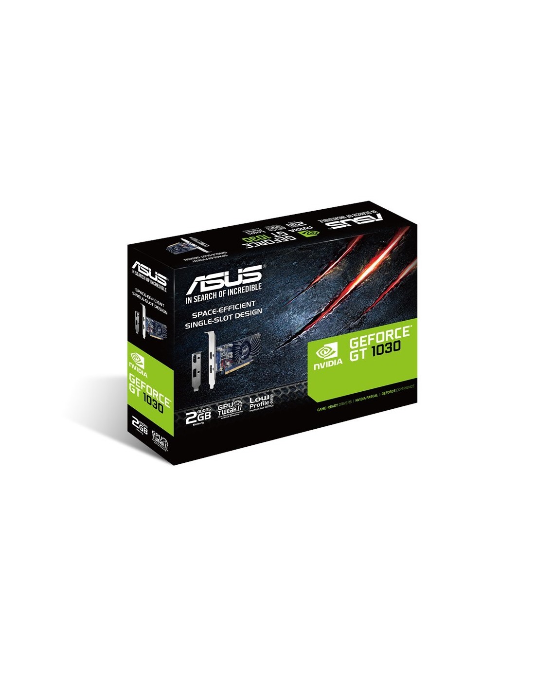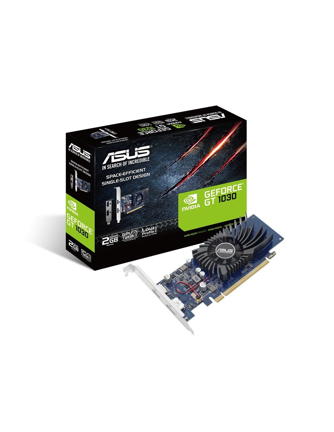 ASUS GT1030-2G-BRK. Familia de procesadores de gráficos: NVIDIA, Procesador gráfico: GeForce GT 1030, Frecuencia del procesador: 1266 MHz. Capacidad memoria de adaptador gráfico: 2 GB, Tipo de memoria de adaptador gráfico: GDDR5, Ancho de datos: 64 bit, Velocidad de memoria del reloj: 6008 MHz. Máxima resolución: 7680 x 4320 Pixeles. Versión DirectX: 12.0, Versión OpenGL: 4.5. Tipo de interfaz: PCI Express 3.0. Tipo de enfriamiento: Activo, Número de ventiladores: 1 Ventilador(es)