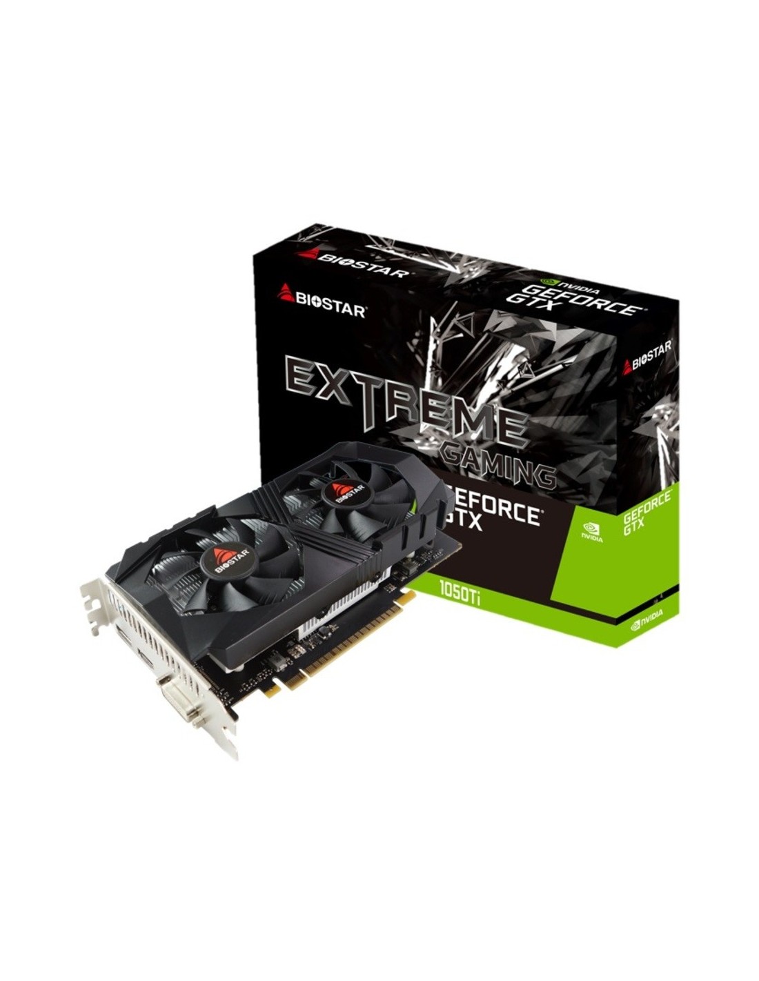Biostar GeForce GTX1050Ti. Familia de procesadores de gráficos: NVIDIA, Procesador gráfico: GeForce GTX 1050 Ti, Frecuencia del procesador: 1291 MHz. Capacidad memoria de adaptador gráfico: 4 GB, Tipo de memoria de adaptador gráfico: GDDR5, Ancho de datos: 128 bit, Velocidad de memoria del reloj: 7008 MHz. Máxima resolución: 7680 x 4320 Pixeles. Versión DirectX: 12.0. Tipo de interfaz: PCI Express 3.0. Tipo de enfriamiento: Activo, Número de ventiladores: 2 Ventilador(es)