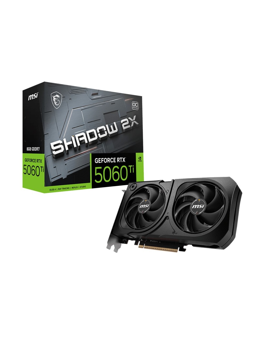 MSI GEFORCE RTX 5060 TI 8G SHADOW 2X OC PLUS. Familia de procesadores de gráficos: NVIDIA, Procesador gráfico: GeForce RTX 5060 Ti. Capacidad memoria de adaptador gráfico: 8 GB, Tipo de memoria de adaptador gráfico: GDDR7, Ancho de datos: 128 bit. Máxima resolución: 7680 x 4320 Pixeles. Versión DirectX: 12 Ultimate, Versión OpenGL: 4.6. Tipo de interfaz: PCI Express x16 5.0. Tipo de enfriamiento: Activo, Número de ventiladores: 2 Ventilador(es)