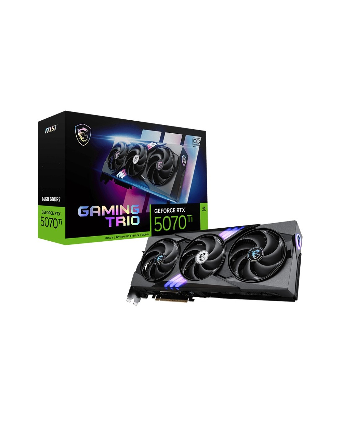 VGA MSI RTX 5070 TI 16G GAMING TRIO OC,NV,RTX5070TI,16GB,GDDR7,256BIT,1HDMI+3DP,TRI FROZR 4 (3 VENTILADORES)