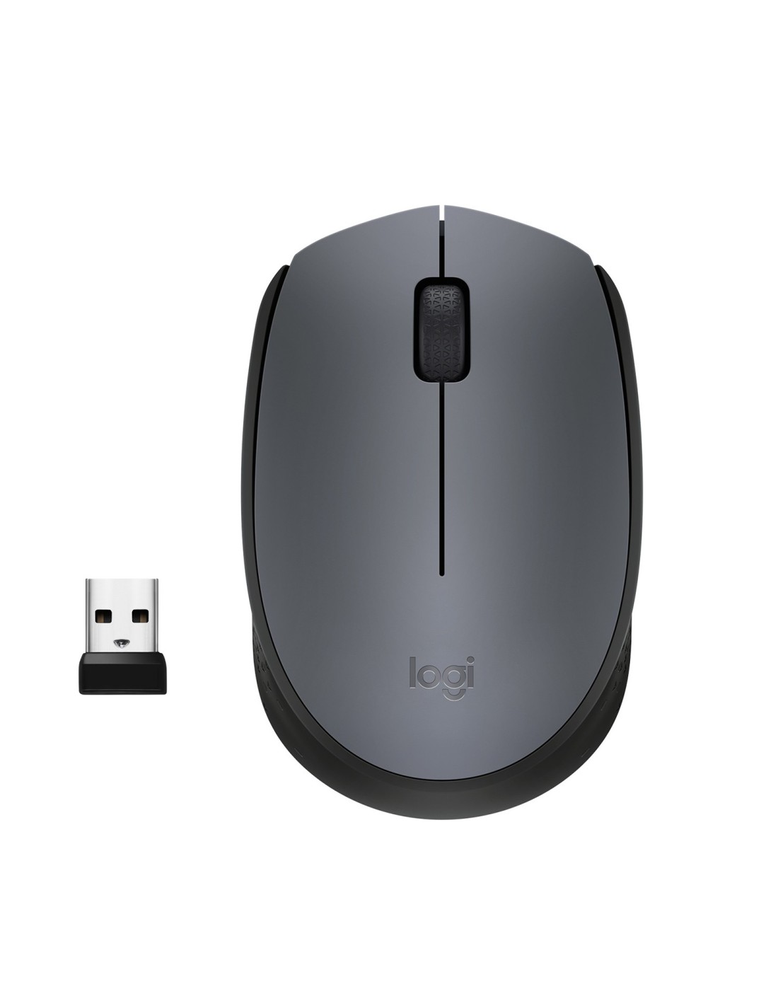 Logitech M170 Grey-K. Factor de forma: Ambidextro. Tecnología de detección de movimientos: Óptico, Interfaz del dispositivo: RF inalámbrico, Resolución de movimiento: 1000 DPI, Tipo de botones: Botones presionados, Cantidad de botones: 2, Tipo de desplazamiento: Rueda. Fuente de energía: Baterías. Color del producto: Gris