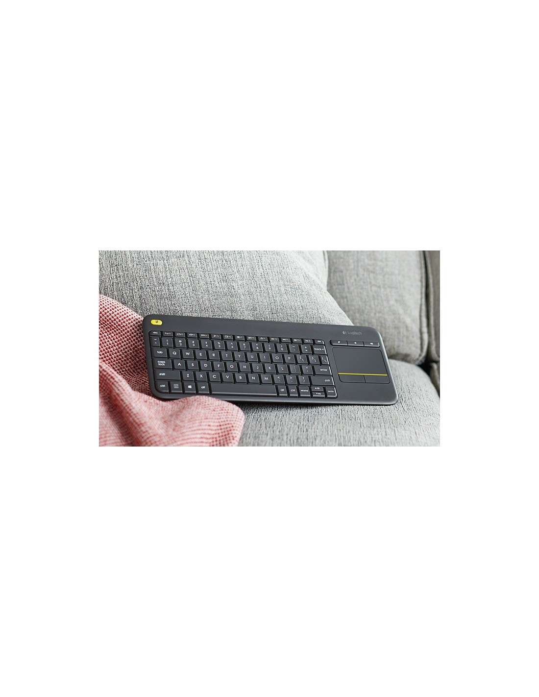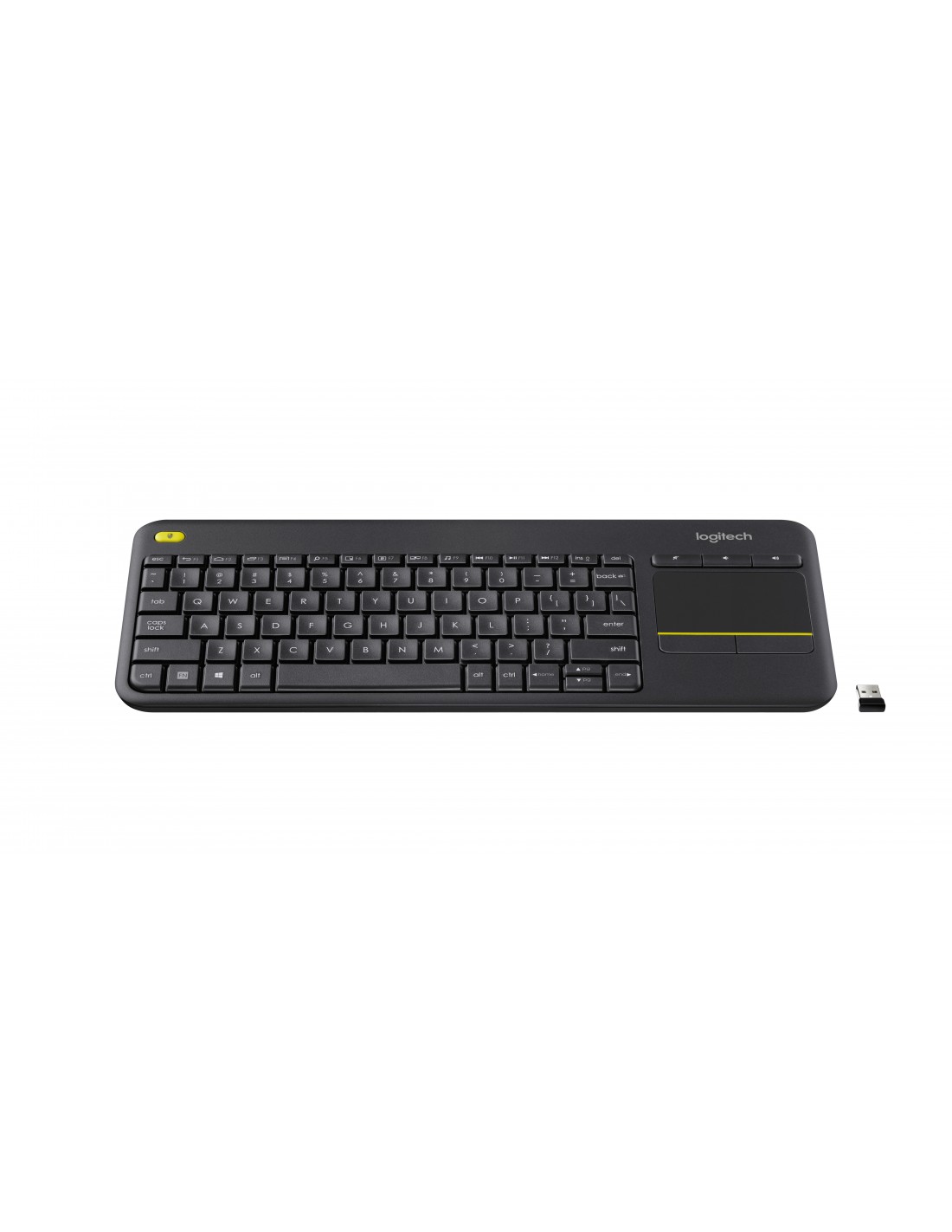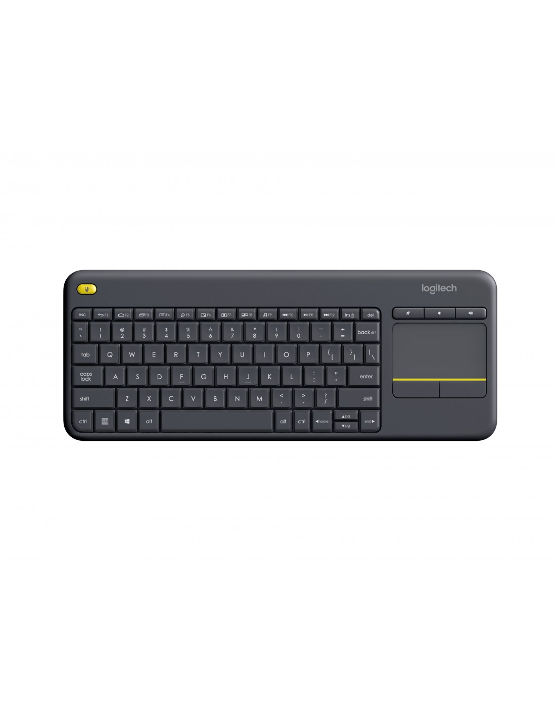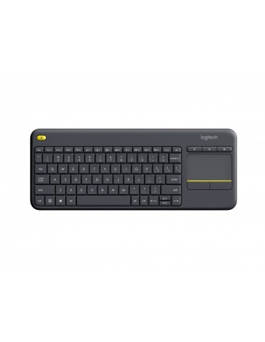 Logitech K400 Plus Tv. Formato del teclado: Mini. Estilo de teclado: Derecho. Tecnología de conectividad: Inalámbrico, Interfaz del dispositivo: RF inalámbrico, Diseño de teclado: QWERTY, Uso recomendado: Universal. Color del producto: Negro