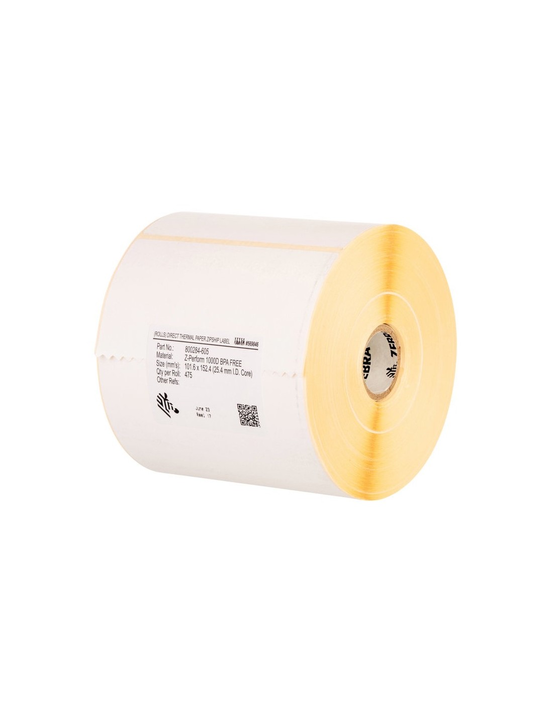 Zebra Z-Perform 1000T. Color del producto: Blanco, Tipo de etiqueta: Etiqueta para impresora autoadhesiva, Tipo: Etiqueta troquelada. No contiene: Bisfenol A (BPA), Látex. Anchura de etiqueta: 10,2 cm, Altura de etiqueta: 16,5 cm, Diámetro de núcleo: 7,62 cm. Etiquetas por paquete: 3520 pieza(s), Etiquetas por rollo: 880 pieza(s)