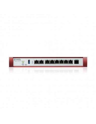 Zyxel USG FLEX 200H. Rendimiento del cortafuegos: 5 Gbit/s, Rendimiento de VPN: 1,2 Gbit/s, IPS / IDS rendimiento: 2000 Mbit/s. Disipación del calor: 58,75 BTU/h. Soporte VPN: IKEv2, IPSec, SSL. Tecnología de conectividad: Alámbrico, Ethernet LAN, velocidad de transferencia de datos: 10,100,1000,2500 Mbit/s, Puerto de consola: RJ-45. Corriente de entrada: 2 A, Voltaje de entrada DC: 12 V, Consumo de energía (max): 22 W